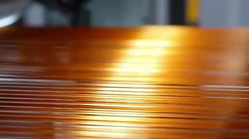 在十几层的S形往返卷轴上,最先进入氧化炉的原丝从白色开始变得金黄,随着进出氧化炉的次数越来越多,原丝由下往上,颜色变得越来越深。从金黄到深黄,再到棕色,最后变成黑色。